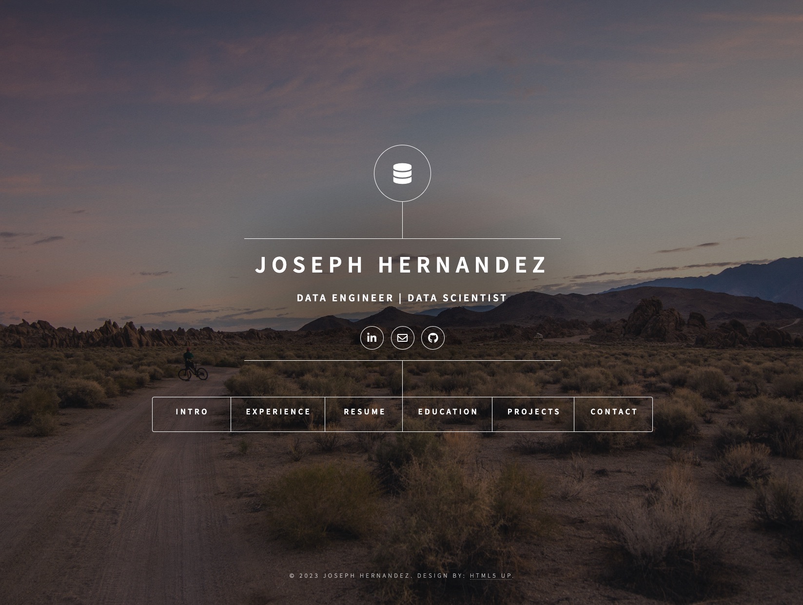 This personal webpage/webfolio project served to assist in my transition from military service and familiarize myself with web frameworks in preparation for my M.S. in Data Science capstone project. The project utilizes Django for the web, Postgres for the Database, Gunicorn for the web server, Nginx for the a proxy server, and the Let's Encrypt Companion for obtaining, managing, and renewing SSL/TLS certificates. Each component was containerized using Docker and deployed on a Linode server. The HTML was modified from HTML5 UP's template and additional CSS was added. Domain and DNS were configured using namecheap.com and Linode.